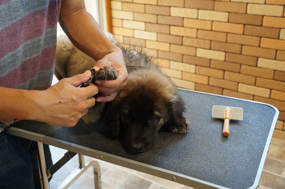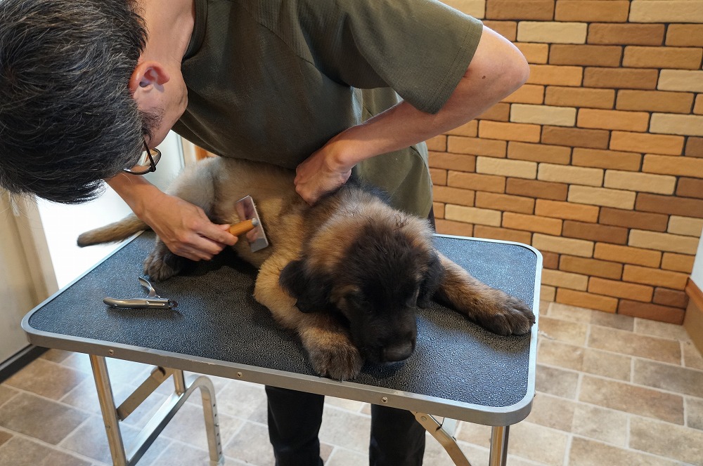 パピー合宿中のレオンベルガーの子犬たちは上から順に2枚ずつ岡田様、松原様、木内様の子です。