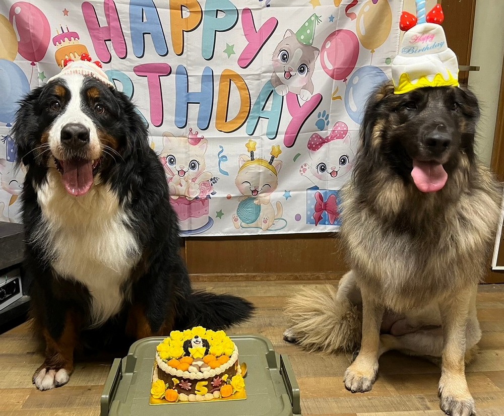 裕太(バーニーズ)の誕生日は一緒にお祝い、信楽に手形を作りに行った時の写真も送ります。